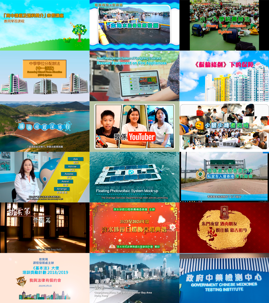 政府部門:教育局、醫院管理局、民政事務總署、環境保護署、衛生署、勞工處、機電工程署、漁農自然護理署、水務署、渠務署、入境事務處、消防處